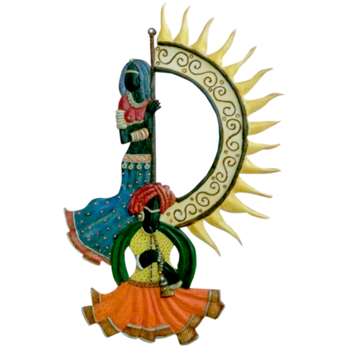 Hand crafted traditional mirror with 12″ * 18 ” size in colorful work of  a couple picture with sun shape mirror look giving beautiful era in entire place.