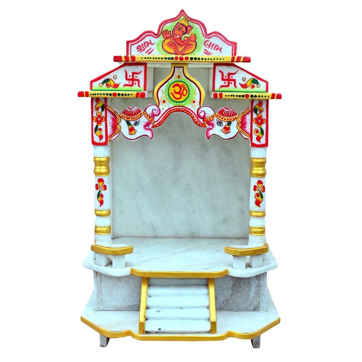 Attribute: Colorful marble mandir with step design with Elephant , Swastik ,Shubh Labh & Ganesha design…