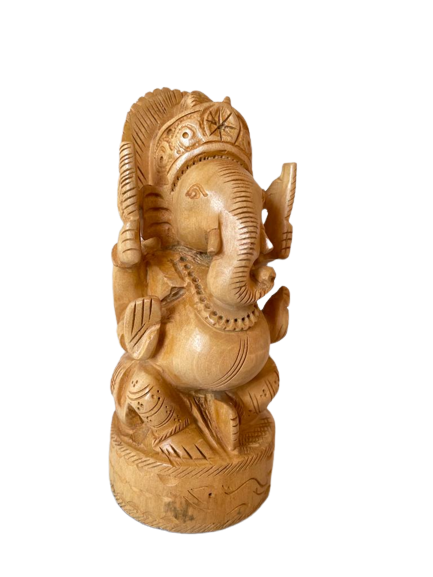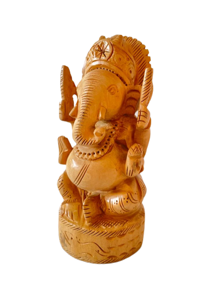 Wooden Ganesha with fine details to enhance your home with vibrant vibes. That is perfect for car dashboard, entrance of home or workplace & pooja place. Available in different sizes.